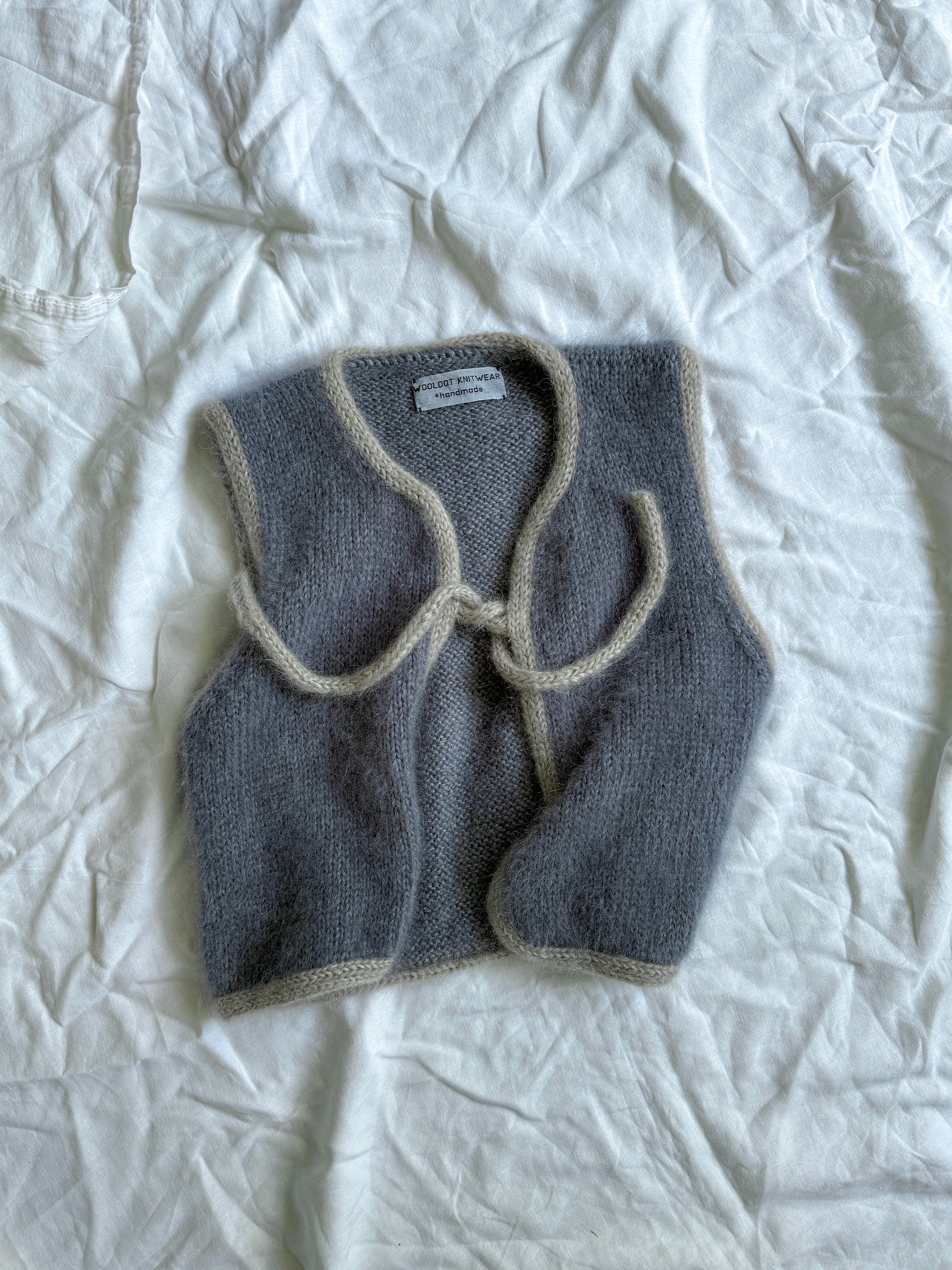 Hand knitted vest is made from luxurious mohair and silk blend yarn (mohair 75%, silk 25%). Soft fit is very cosy and comfortable.