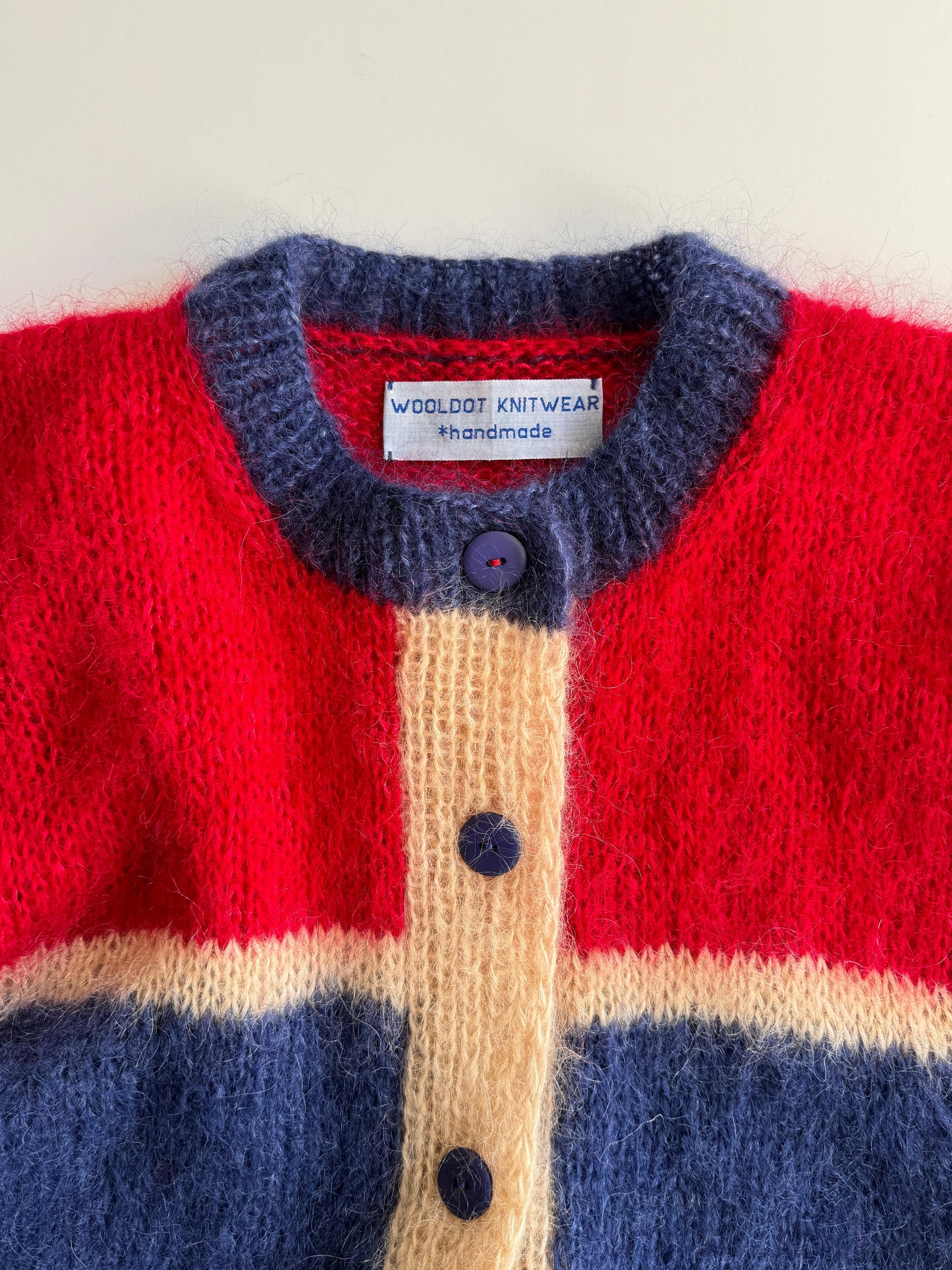 This bright and cozy mohair vest is made from a blend of natural yarn, mohair, and silk. Experience ultimate comfort and style with its soft texture and eye-catching colors. Perfect for adding a touch of quirkiness to any outfit.
