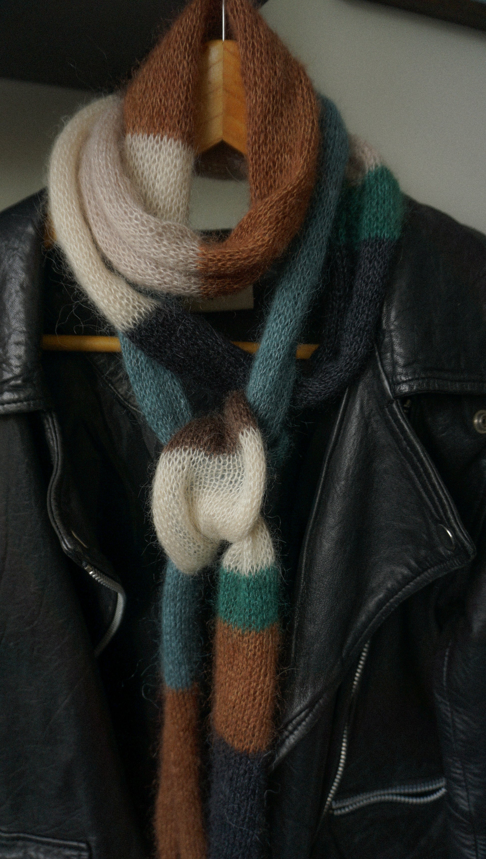 Skinny mohair scarf earthy colours stripes