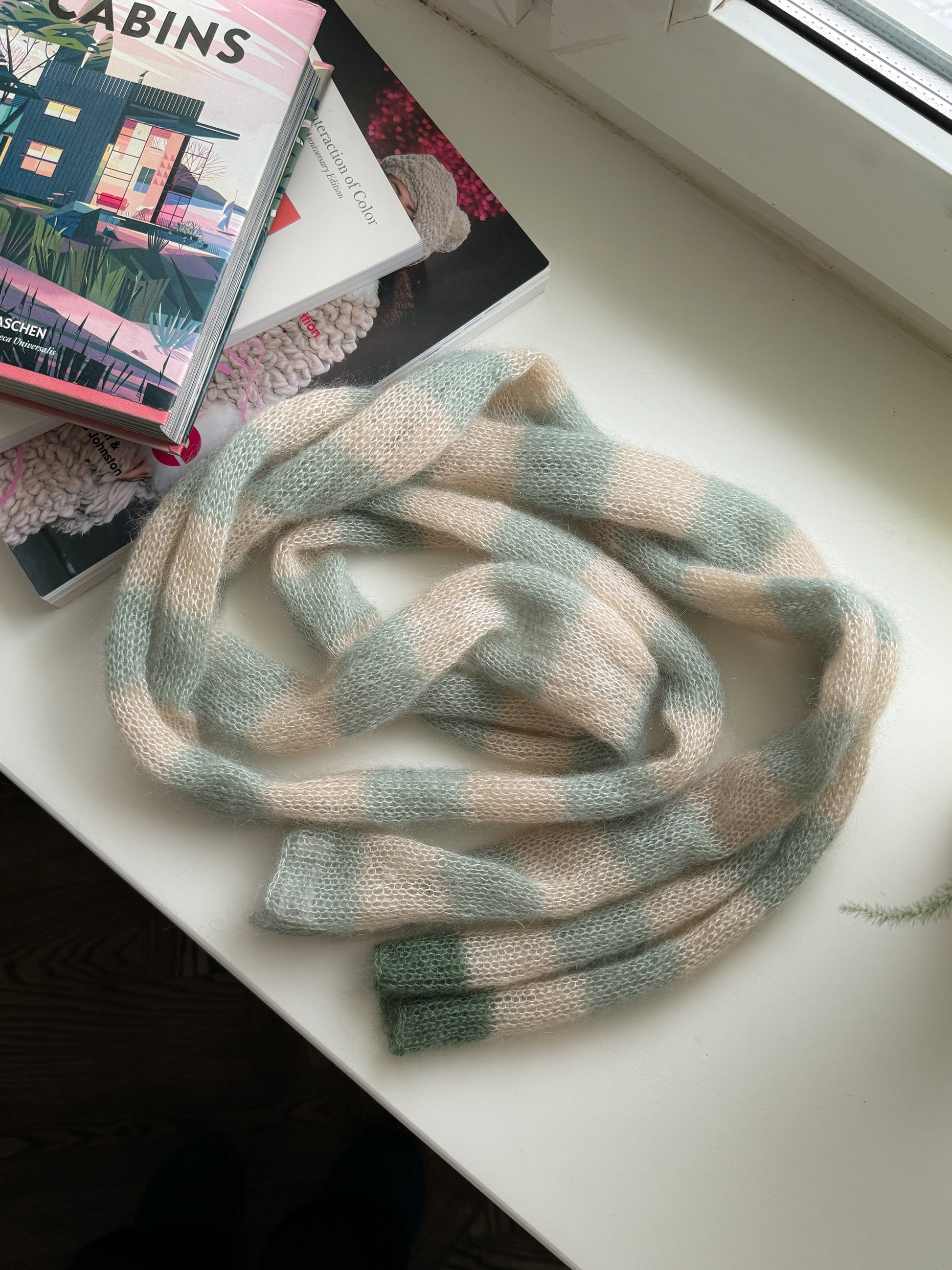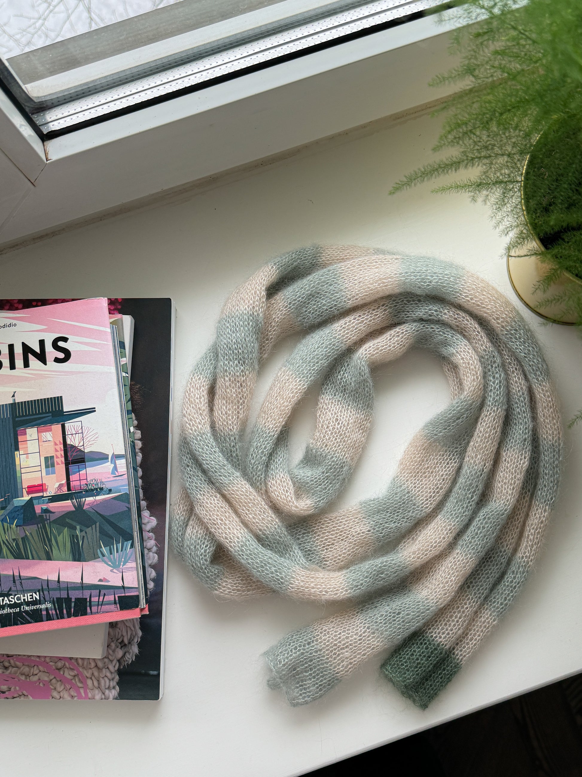Skinny mohair scarf sand and sage stripes