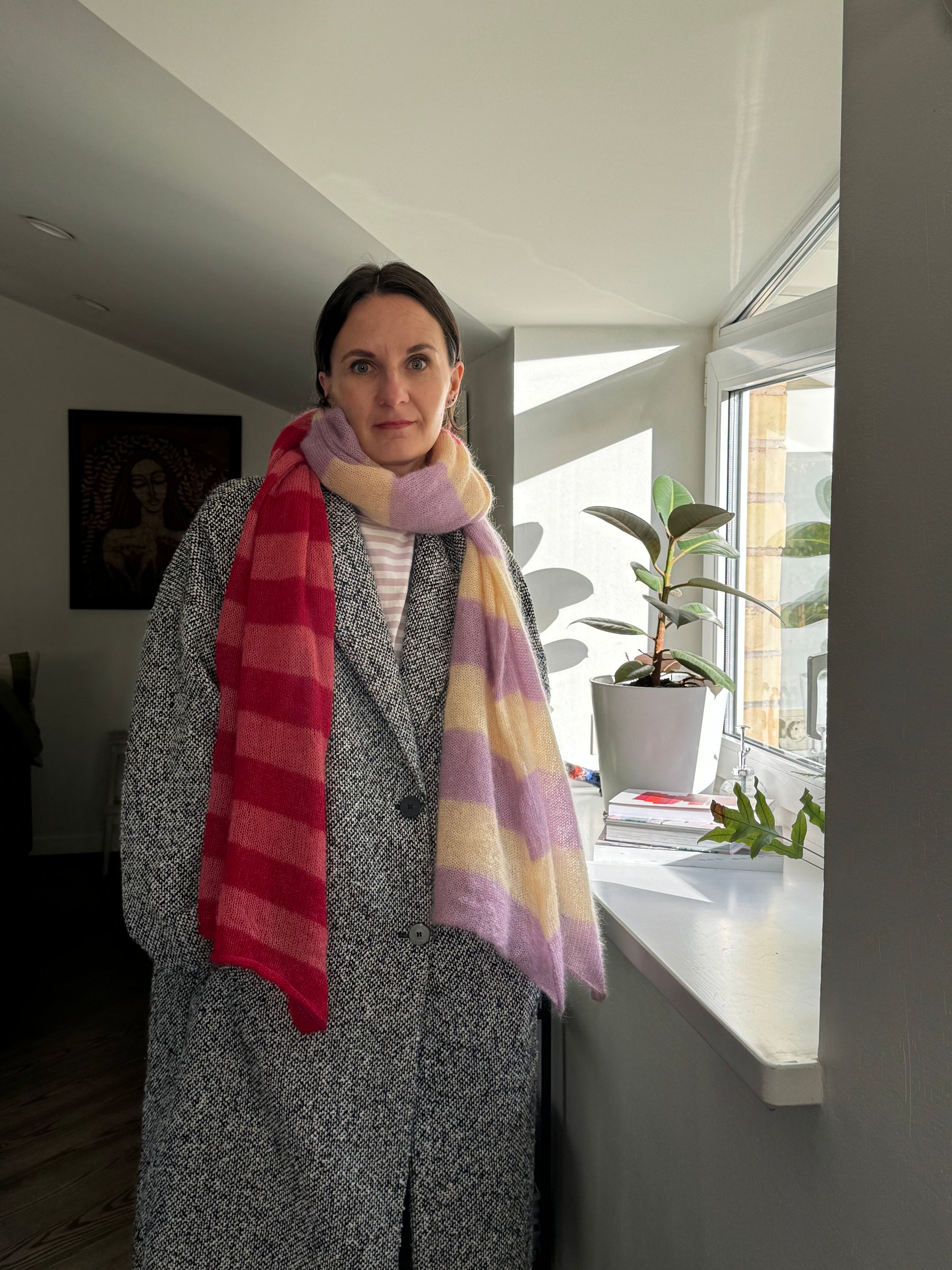 Thin wide mohair scarf in yellow and pink red shades