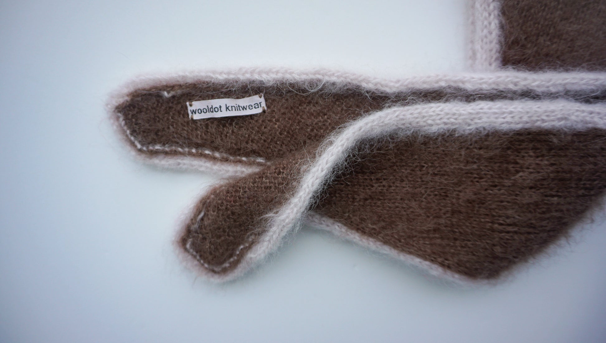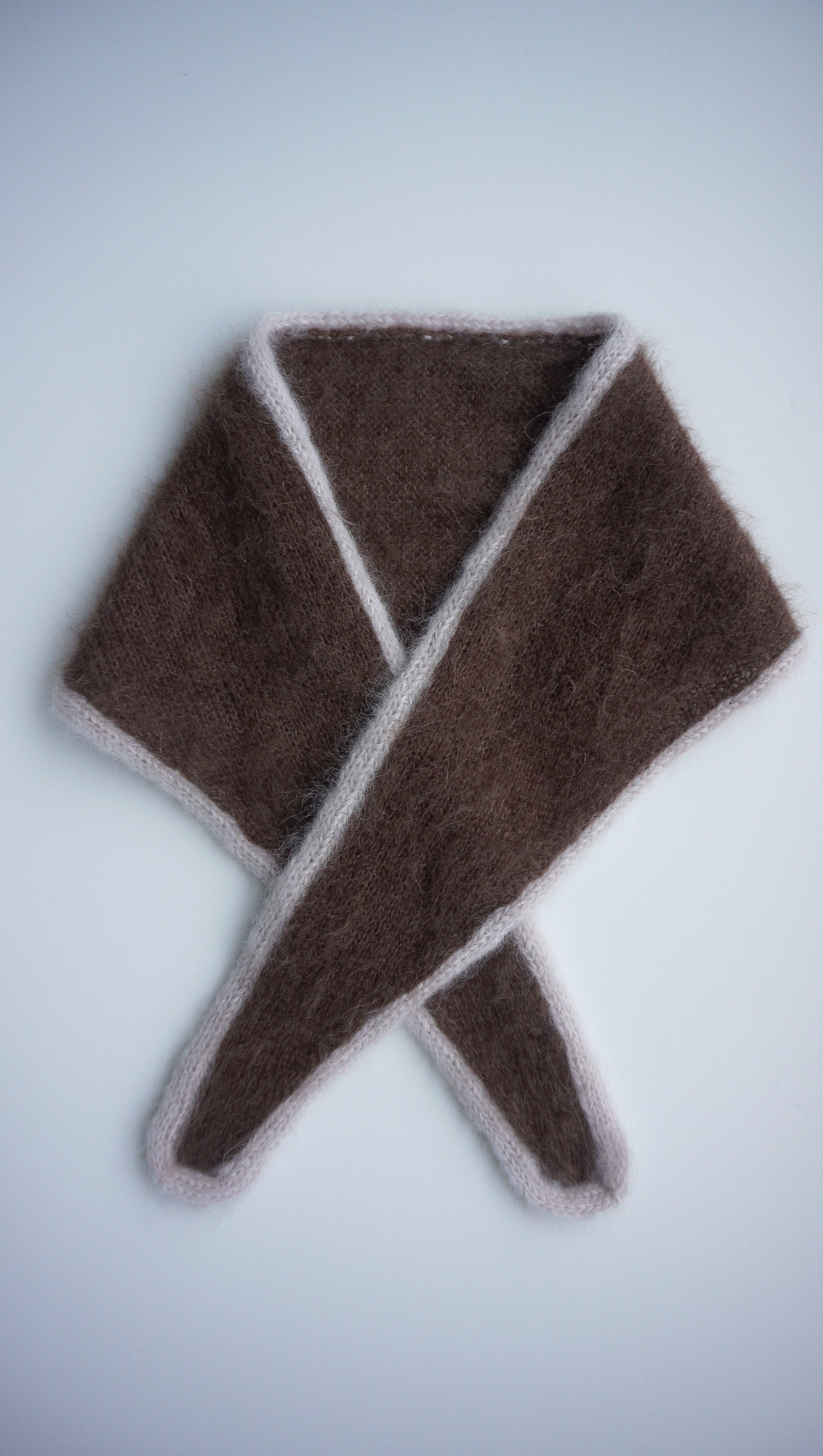 TOMO Bandana—your new go-to accessory for adding warmth and cheer to your day. Lovingly crafted from soft mohair, this cheerful brown bandana with its beige trim feels as wonderful as it looks.